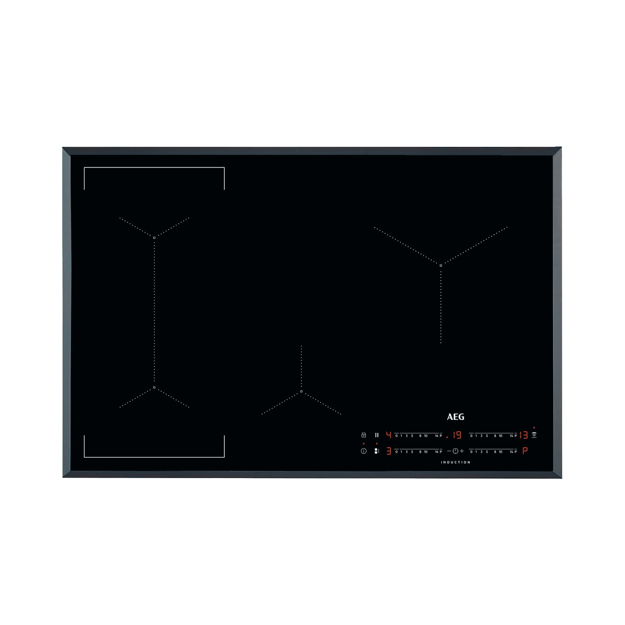 AEG IKK84443FB Piano cottura ad induzione serie 6000 Bridge 80 cm. Colore del prodotto: Nero, Posizionamento dell’apparecchio: Da incasso, Dimensione della larghezza del piano cottura: 75 cm. Certificazione: WABE|UL|DEMKO|CE. Tipo di controllo: Touch, Posizione di controllo: In alto a destra. Potenza aggregata (elettrica): 7200 W, Tensione di ingresso AC: 220-240/400 2N, Frequenza di ingresso AC: 50/60 Hz. Larghezza: 780 mm, Profondità: 520 mm, Peso: 11,6 kg