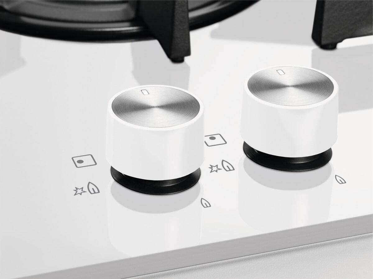 Electrolux KGG6437W Piano cottura Serie 600 Gas on Glass 60cm. Colore del prodotto: Bianco, Posizionamento dell’apparecchio: Da incasso, Dimensione della larghezza del piano cottura: 60 cm. Certificazione: CE. Tipo di controllo: Manopola, Posizione di controllo: In alto a destra, Tipo di accensione elettronica: Accensione con manopola. Tensione di ingresso AC: 220-240 V, Frequenza di ingresso AC: 50/60 Hz, Tipo di gas: NG + GPL (Propano/Butano). Larghezza: 590 mm, Profondità: 520 mm, Peso: 12,8 kg