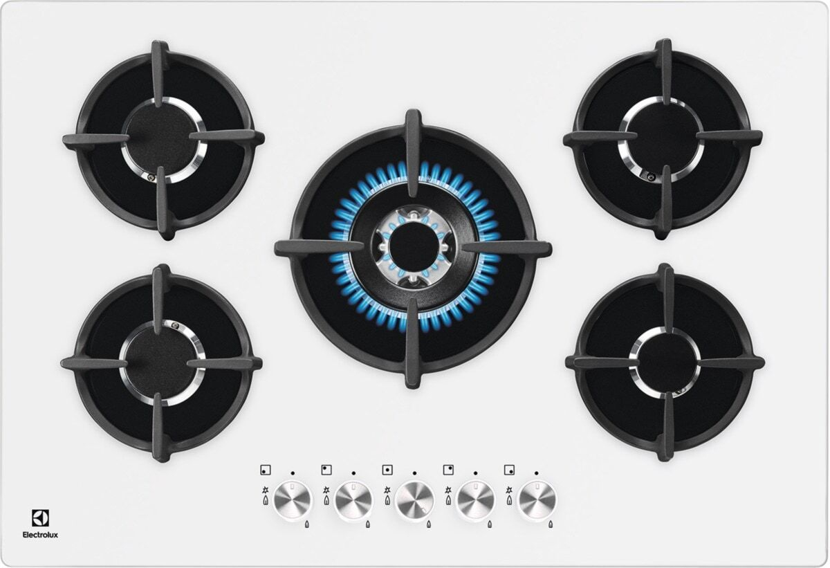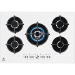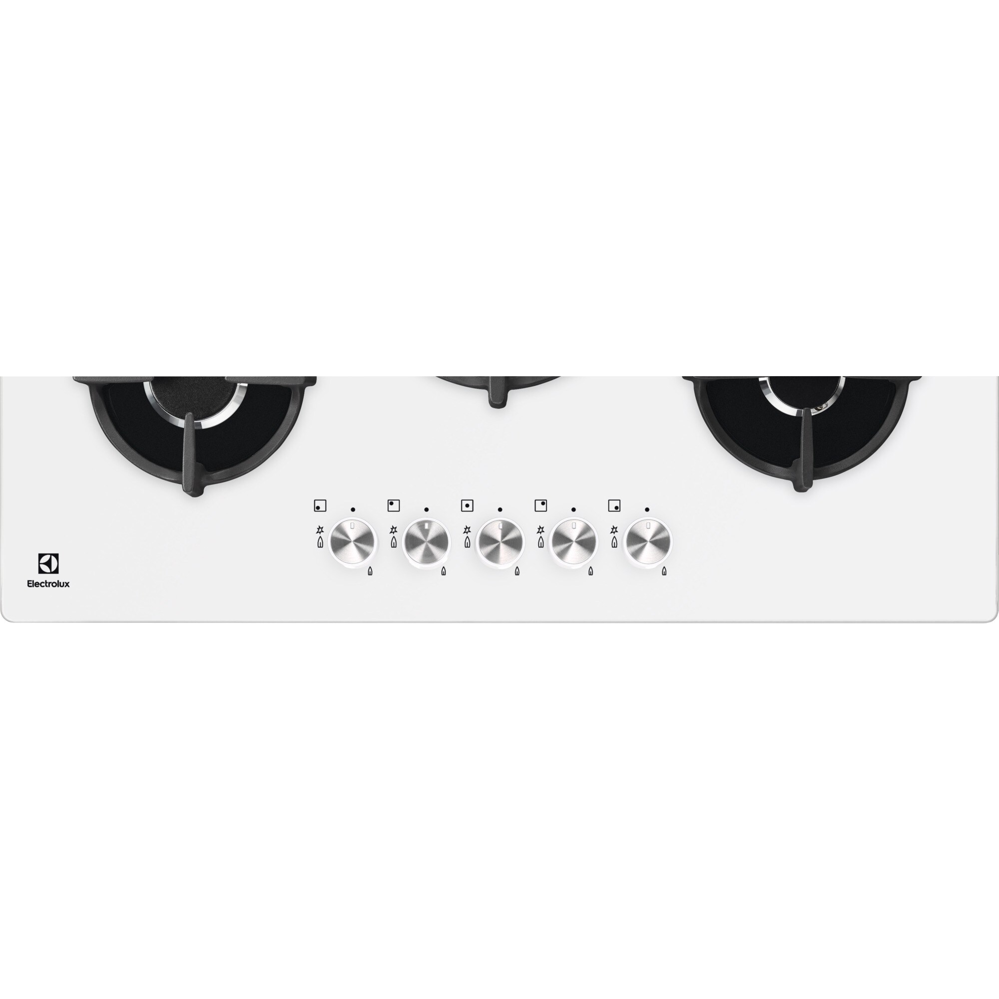 Electrolux KGG7537W Piano cottura Serie 600 Gas on Glass 75cm. Colore del prodotto: Bianco, Posizionamento dell’apparecchio: Da incasso, Dimensione della larghezza del piano cottura: 75 cm. Certificazione: CE. Tipo di controllo: Manopola, Posizione di controllo: Frontale superiore, Tipo di accensione elettronica: Accensione con manopola. Tensione di ingresso AC: 220-240 V, Frequenza di ingresso AC: 50/60 Hz, Tipo di gas: NG + GPL (Propano/Butano). Larghezza: 740 mm, Profondità: 510 mm, Peso: 15,1 kg