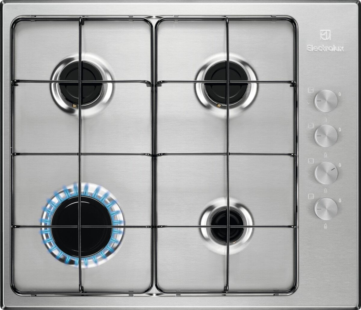 Electrolux KGS6404SX Piano cottura a gas Serie 300 Slim side control 60cm. Colore del prodotto: Acciaio inox, Posizionamento dell’apparecchio: Da incasso, Dimensione della larghezza del piano cottura: 60 cm. Certificazione: CE. Tipo di controllo: Manopola, Posizione di controllo: In alto a destra, Tipo di accensione elettronica: Accensione con manopola. Potenza aggregata (gas): 8000 W, Tensione di ingresso AC: 220-240 V, Frequenza di ingresso AC: 50/60 Hz. Larghezza: 594 mm, Profondità: 510 mm, Peso: 7,1 kg