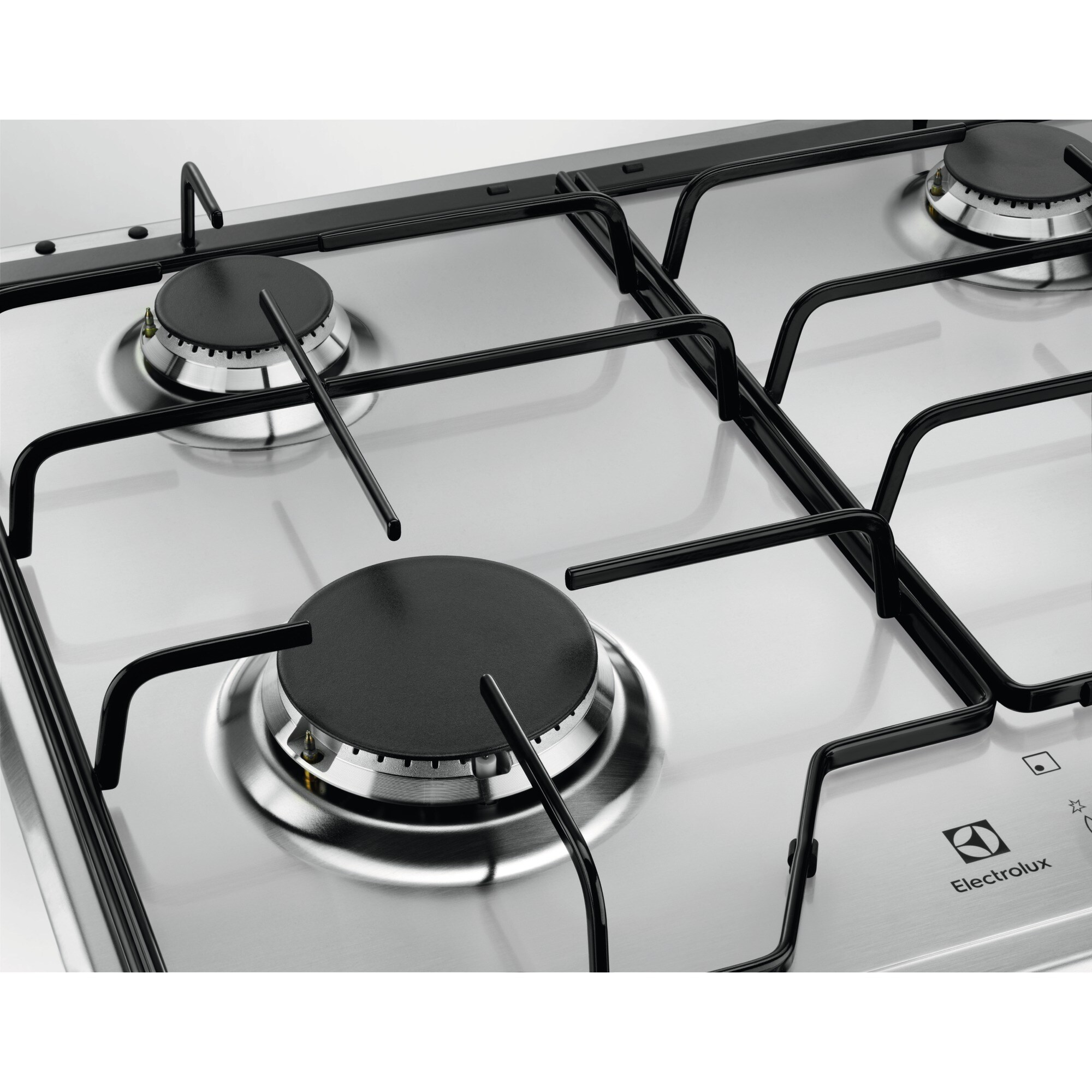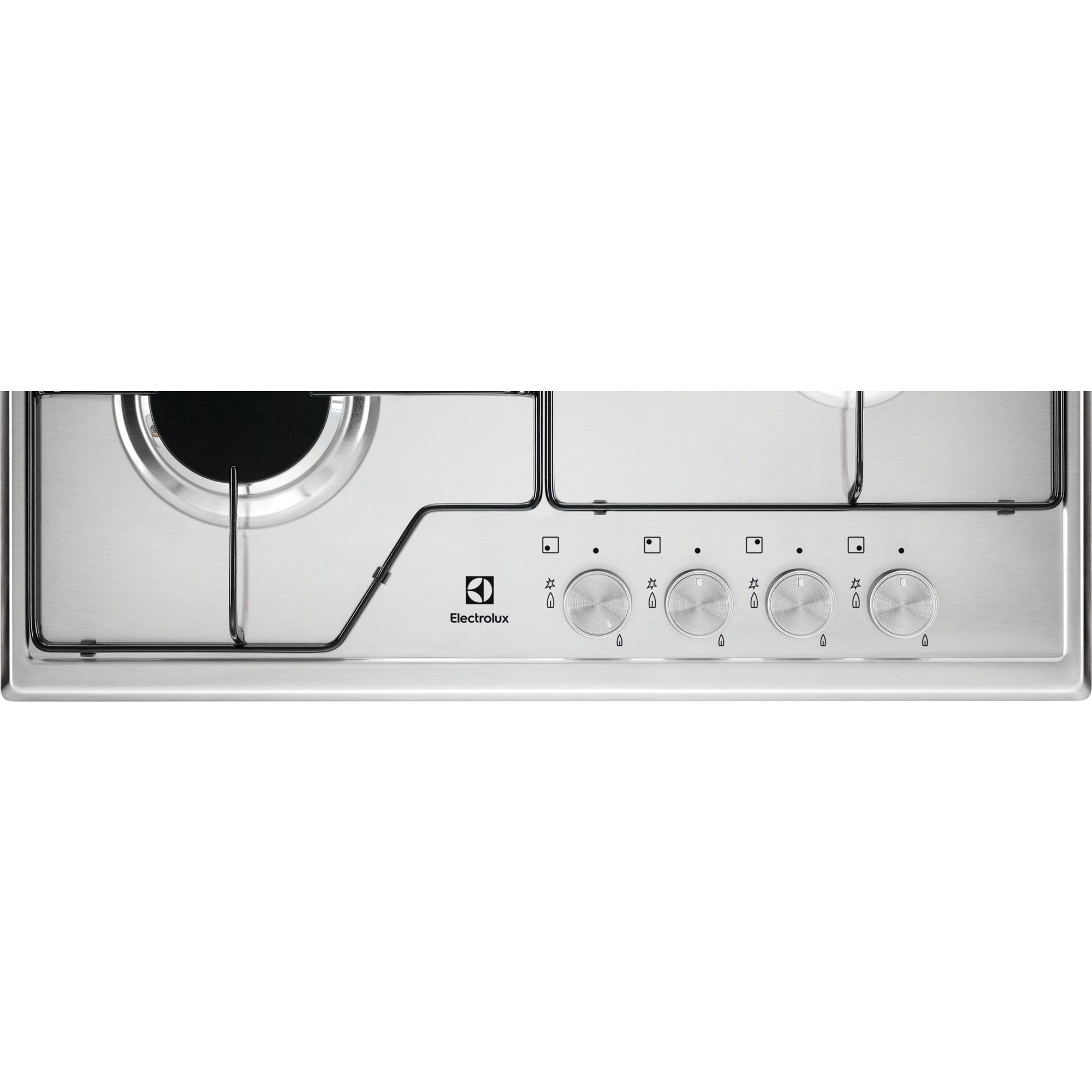 Electrolux KGS6424SX Piano cottura a gas Serie 600 Slim Line 60cm. Colore del prodotto: Acciaio inox, Posizionamento dell’apparecchio: Da incasso, Dimensione della larghezza del piano cottura: 75 cm. Certificazione: CE. Tipo di controllo: Manopola, Posizione di controllo: In alto a sinistra, Tipo di accensione elettronica: Accensione con manopola. Potenza aggregata (gas): 7800 W, Tensione di ingresso AC: 220-240 V, Frequenza di ingresso AC: 50/60 Hz. Larghezza: 595 mm, Profondità: 510 mm, Peso: 8 kg
