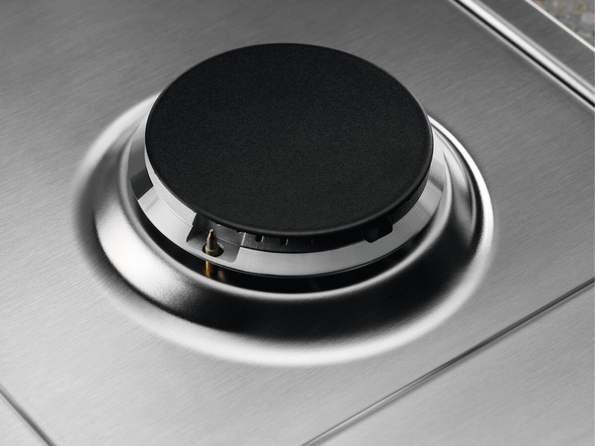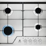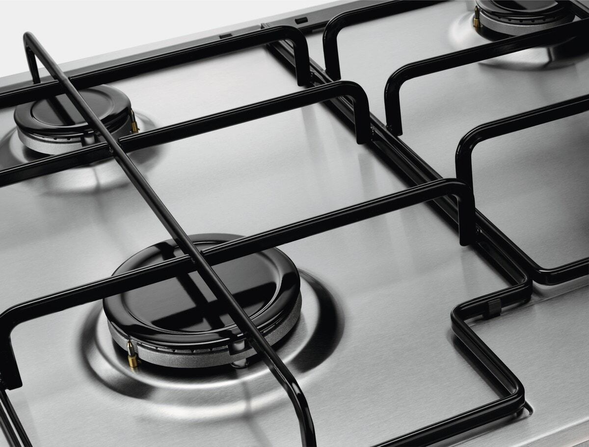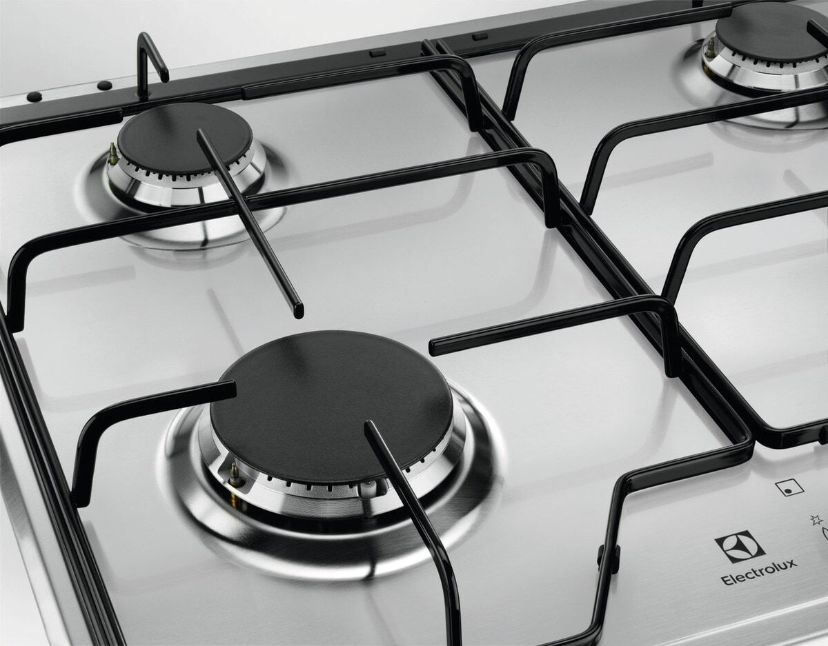 Electrolux KGS6424SX Piano cottura a gas Serie 600 Slim Line 60cm. Colore del prodotto: Acciaio inox, Posizionamento dell’apparecchio: Da incasso, Dimensione della larghezza del piano cottura: 60 cm. Certificazione: CE. Tipo di controllo: Manopola, Posizione di controllo: In alto a sinistra, Tipo di accensione elettronica: Accensione con manopola. Potenza aggregata (gas): 7800 W, Tensione di ingresso AC: 220-240 V, Frequenza di ingresso AC: 50/60 Hz. Larghezza: 595 mm, Profondità: 510 mm, Peso: 8 kg