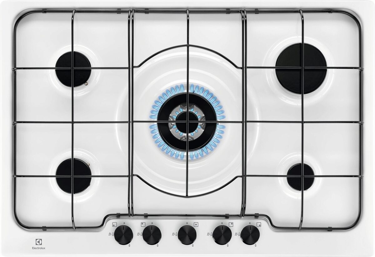 Electrolux PB750UV Piano cottura a gas Serie 300 Soft line 75cm. Colore del prodotto: Bianco, Posizionamento dell’apparecchio: Da incasso, Dimensione della larghezza del piano cottura: 75 cm. Certificazione: CE. Tipo di controllo: Manopola, Posizione di controllo: Frontale superiore, Tipo di accensione elettronica: Accensione con manopola. Tensione di ingresso AC: 220-240 V, Frequenza di ingresso AC: 50/60 Hz, Tipo di gas: NG + GPL (Propano/Butano). Larghezza: 744 mm, Profondità: 510 mm, Peso: 10,4 kg