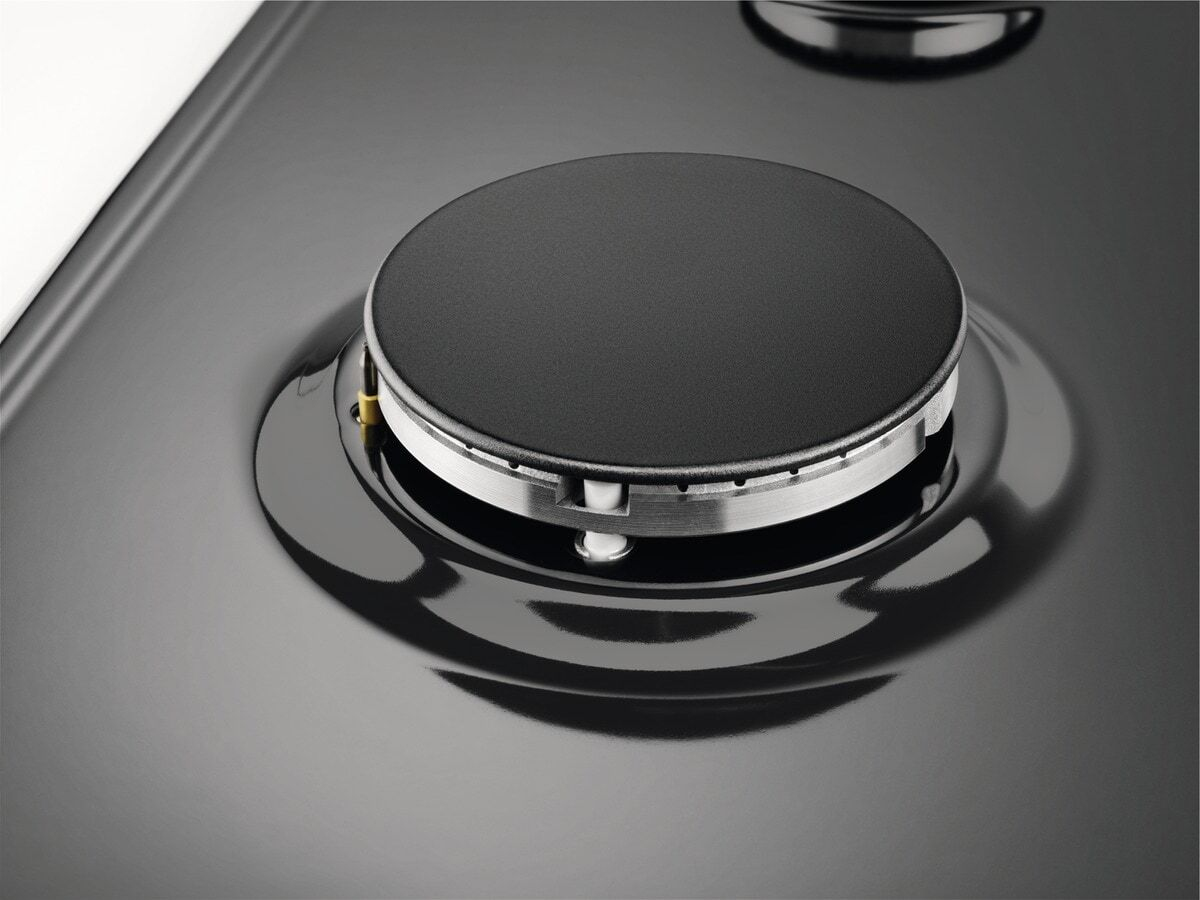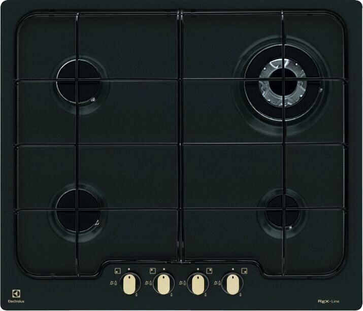 Electrolux PN640RUV Piano cottura a gas Serie 300 Soft line 60cm. Colore del prodotto: Nero, Posizionamento dell’apparecchio: Da incasso, Dimensione della larghezza del piano cottura: 60 cm. Certificazione: CE. Tipo di controllo: Manopola, Posizione di controllo: Frontale superiore, Tipo di accensione elettronica: Accensione con manopola. Potenza aggregata (gas): 9000 W, Tensione di ingresso AC: 220-240 V, Frequenza di ingresso AC: 50/60 Hz. Larghezza: 594 mm, Profondità: 510 mm, Peso: 8,3 kg